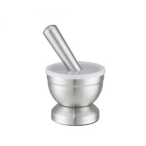 ALMOFARIZ PILAO C/SOCADOR Ø10×9CM INOX C/TAMPA PLASTICA – Zahav Inox